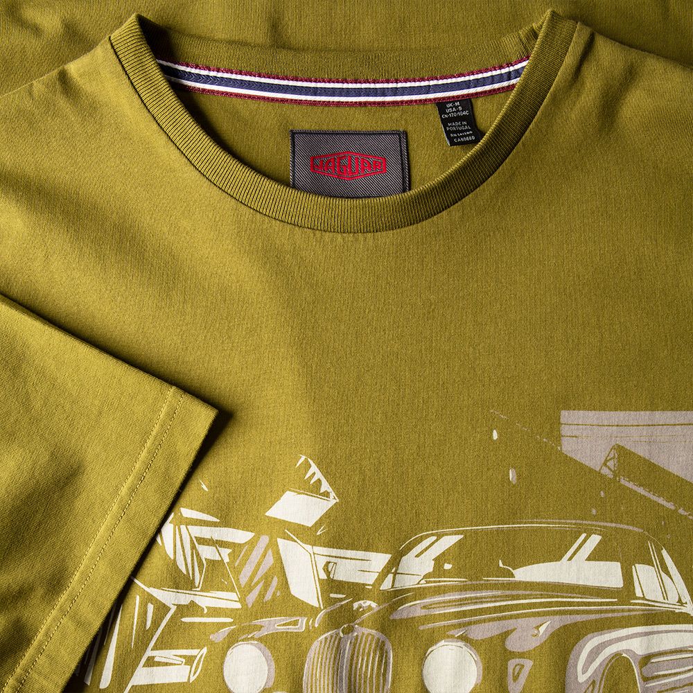 T-shirt immortalising the Jaguar Mark II. Sports a dynamic graphic to the front and Ultimate Getaway Car logo to the back neck. Finished with Heritage lozenge to the sleeve.